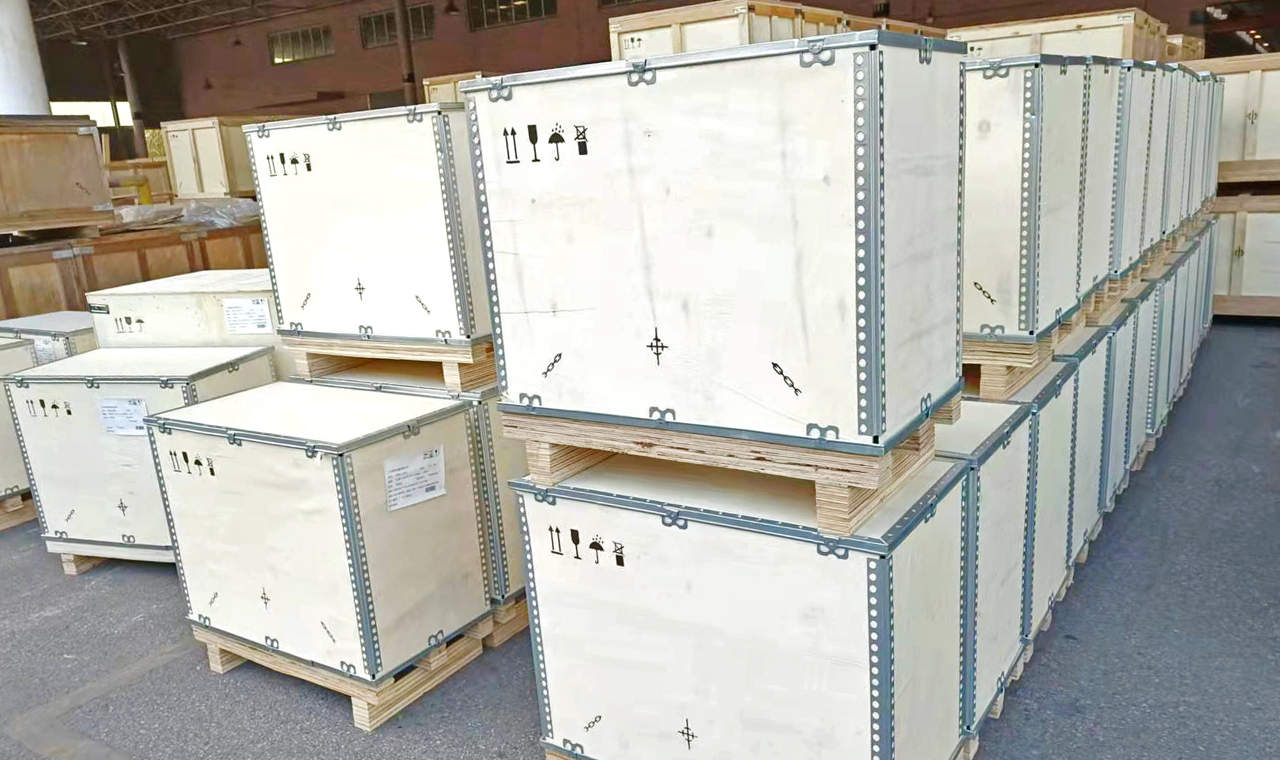 大型机械零部件的运输使用钢带箱,原因主要体现在以下几方面: 1.稳固性强 高强度支撑:大型机械零部件通常重量大、体积庞大,钢带箱以坚固的钢带作为捆扎、加固材料,搭配优良的木质或胶合板板材,构建起极为稳固的箱体结构。相较于普通纸箱或简易木箱,能更好地承受零部件的重压,防止运输途中因箱体变形、塌陷,致使零部件受损。例如,重型发动机、大型机床床身等运输时,钢带箱坚实的框架可确保其稳固放置。